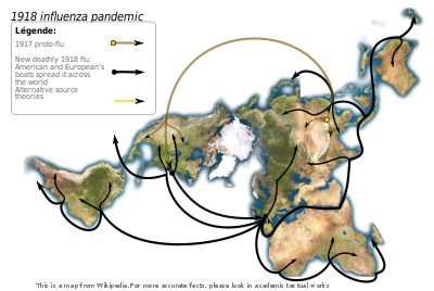 - ↑ Johnson N. P., Mueller J. «Updating the accounts : global mortality of the 1918-1920 "Spanish" influenza pandemic.», Bull Hist Med., printemps 2002, 76 (1), p. 105-15. Citation : «This paper suggests that it was of the order of 50 million. However, it must be acknowledged that even this vast figure may be substantially lower than the real toll, perhaps as much as 100 percent understated. » Résumé.